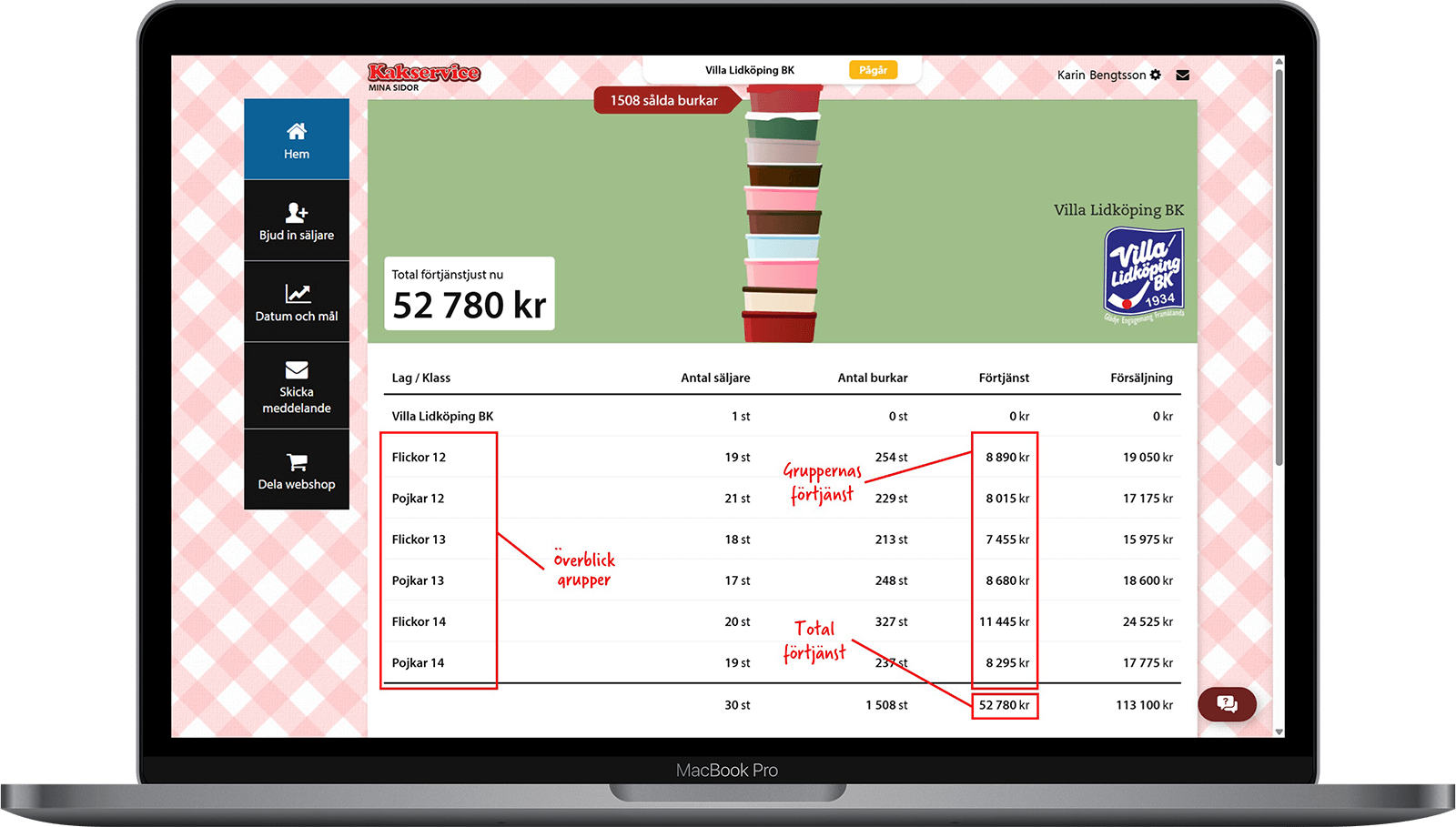 Ni ser lättöverskådligt alla gruppernas enskilda försäljning
